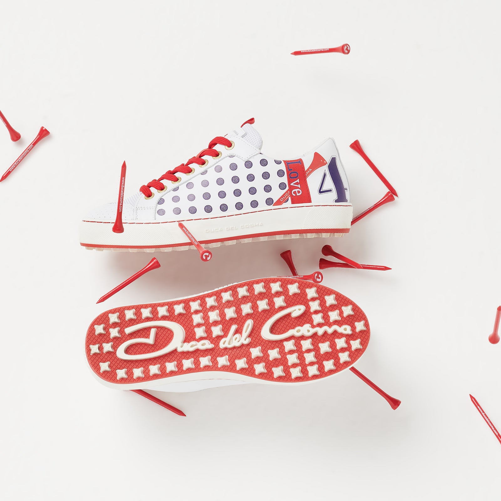 The Esti women's golf shoe is packed with quirkiness, from the cheerful print to the 'Love' strap with a graphic tee and '4'. Of course, this handmade Nappa leather golf shoe is also super comfortable. The leather-clad ARNEFLEX® memory foam insole provides comfort and support, while Duca's Airplay VIII outsole provides flexibility and grip. You'll get tons of compliments and lots of big smiles in the Esti.
